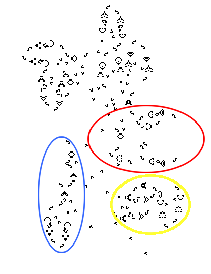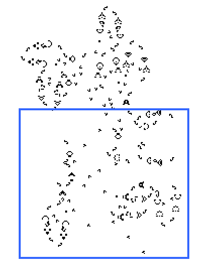 La zona ennmarcada en azul es un gun que emite gliders que hace rebotar las entradas y éstas enntonces se dirigen hacia la zona enmarcada en rojo .
