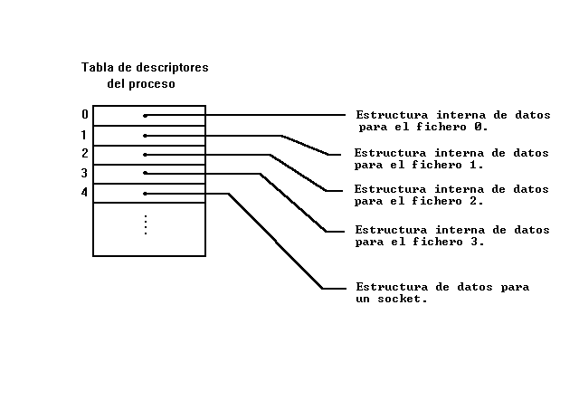 Tabla descriptora de ficheros de un proceso.Una diferencia esencial con los archivos es que el nombrado de los sockets es una operación distinta de su creación (apertura y creación van a la par, pero después es posible fijar una dirección de su dominio al objeto creado por medio de la primitiva bind).