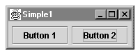 /* * Simple1.java - an example of handling events. * For this example, we implement a single ActionListener * which is then used to catch all events. A series of ifs * are used to determine which object caused the event. */ import java.awt.*; import java.awt.event.*; import javax.swing.*; public class Simple1 { private static JFrame frame; // static so main can use it private static JPanel myPanel; // panel for the contentPane private JButton button1; // Define out here to make private JButton button2; // visible to ActionListener public Simple1() // Construct, build GUI { // Create a panel myPanel = new JPanel(); // Create the buttons. button1 = new JButton("Button 1"); // Create buttons button2 = new JButton("Button 2"); SimpleListener ourListener = new SimpleListener(); // Set action listener for both buttons to share button1.addActionListener(ourListener); button2.addActionListener(ourListener); myPanel.add(button1); // Adds to current JFrame myPanel.add(button2); } private class SimpleListener implements ActionListener { /* * We will use a simple inner class to implement an * ActionListener to use to get the button events. We * could have instead used the Simple1 class itself to * implement ActionListener instead, but this way is * more consistent with the other examples. */ public void actionPerformed(ActionEvent e) { // We will use getActionCommand to get the button // name, but we could use getSource() instead and // the if tests would then be like: // if (e.getSource() == button1) etc. String buttonName = e.getActionCommand(); if (buttonName.equals("Button 1")) JOptionPane.showMessageDialog(frame, "Button 1 pressed"); else if (buttonName.equals("Button 2")) JOptionPane.showMessageDialog(frame, "Button 2 pressed"); else JOptionPane.showMessageDialog(frame, "Unknown event"); } } public static void main(String s[]) { Simple1 gui = new Simple1(); // Create Simple1 component frame = new JFrame("Simple1"); // JFrame for the panel // Standard idiom to catch close event frame.addWindowListener(new WindowAdapter() { public void windowClosing(WindowEvent e) {System.exit(0);} }); frame.getContentPane().add(myPanel); frame.pack(); // Ready to go frame.setVisible(true); } }Let's go over how this code works. Our simple application will consist of a Swing JFrame defined in main. We will add a single JPanel to the frame. The panel will contain the two JButtons. The variable references to these components, frame, button1, and button2 are defined at the top level of Simple1.1