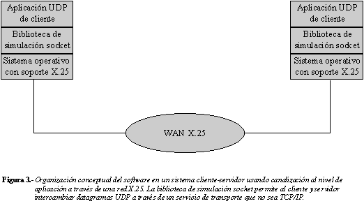 Cuando la biblioteca de simulación socket ha sido creada, los programadores pueden compilar cualquier programa UDP de cliente o servidor usando llamadas a funciones de dicha biblioteca. La Figura 3 ilustra la estructura software resultante.