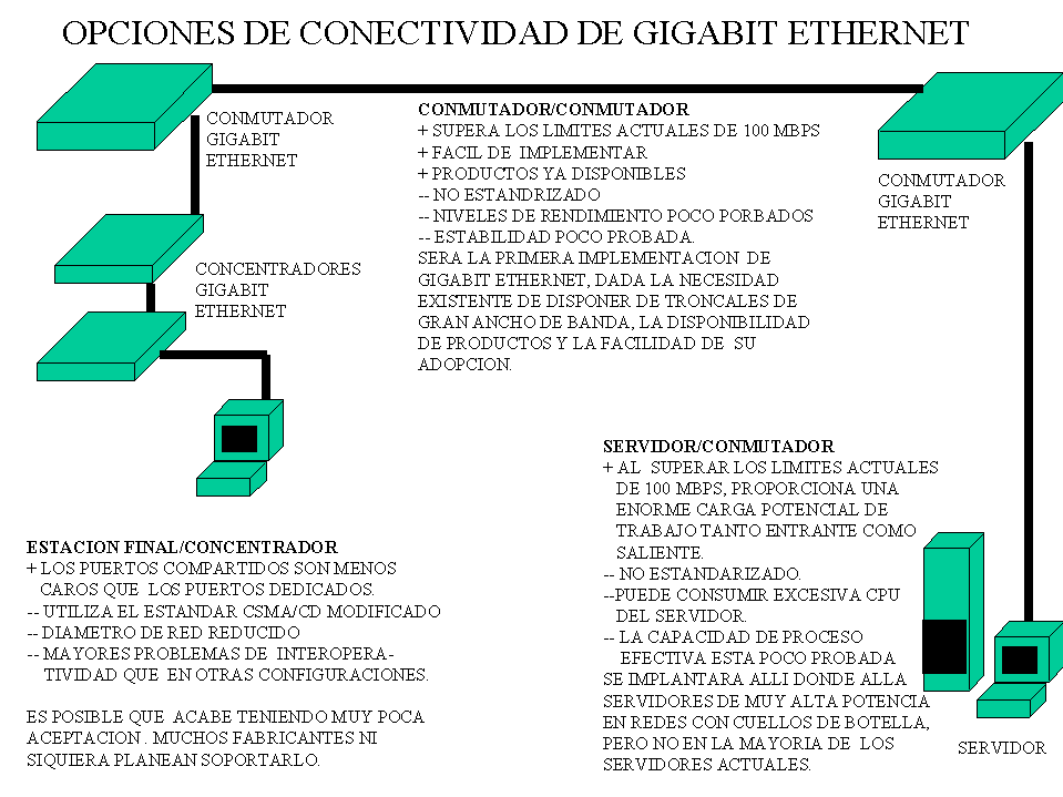 Figura 2.-Opciones de conectividad de Gigabit Ethernet.