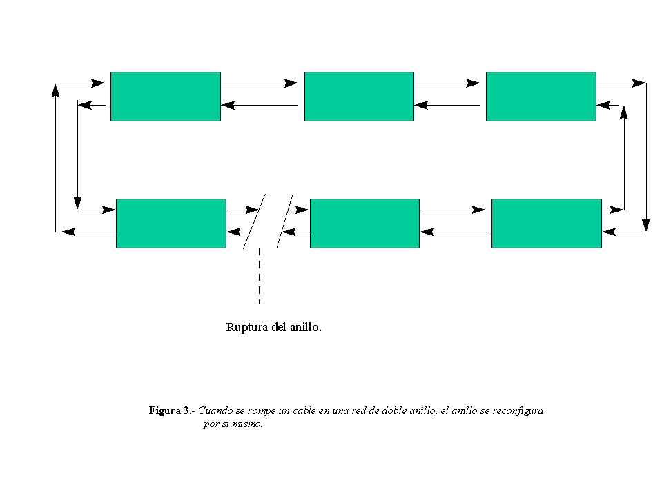 Figura 1.- Un anillo FDDI usado como red troncal para conectar LAN’s y ordenadores.