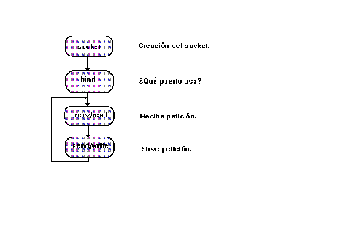 Secuencia de llamadas hecha por un servidor.En el caso de que la comunicación sea sin conexión, la secuencia de llamadas varía sensiblemente, puesto que no es necesario encolar las peticiones que le llegan al servidor, ni esperar a que la conexión se efectúe. El servidor, una vez conectado al puerto correspondiente, se bloquea hasta que recibe alguna petición por parte de un cliente, contestando a este, y retomando la escucha a la espera de nuevas peticiones. La secuencia de llamadas: