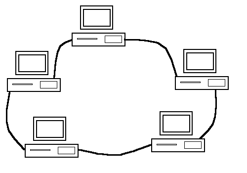 Otro ejemplo de LAN muy común es Token Ring, en el que las placas se unen mediante un cable, pero con la particularidad de que él último ordenador se conecta a su vez con el primero formando un anillo.
