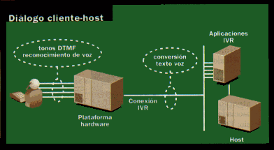 Un sistema IVR consiste en una plataforma hardware mas una conexión a red de área local, a la cual se conectan host de bases de datos y la aplicación propiamente dicha.
