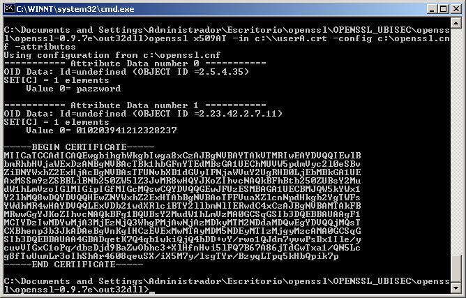 openssl x509AT -config c:\openssl.cnf -in c:\userA.crt -attributes