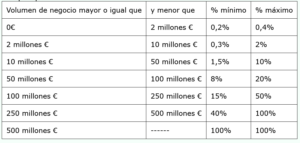 puede llegar a ser mucho mayor, si el volumen de negocio supera mucho los 500 millones €.